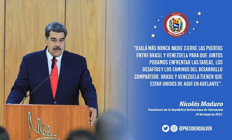 @PresidencialVen | #EnVivo 📹 | "Llevamos la voz de nuestra Patria", enfatizó el mandatario venezolano @NicolasMaduro en alusión a su participación en la Reunión de Presidentes de los países de América del Sur, realizada en Brasilia. https://t.co/dcWiUrYen1 @NicolasMaduro